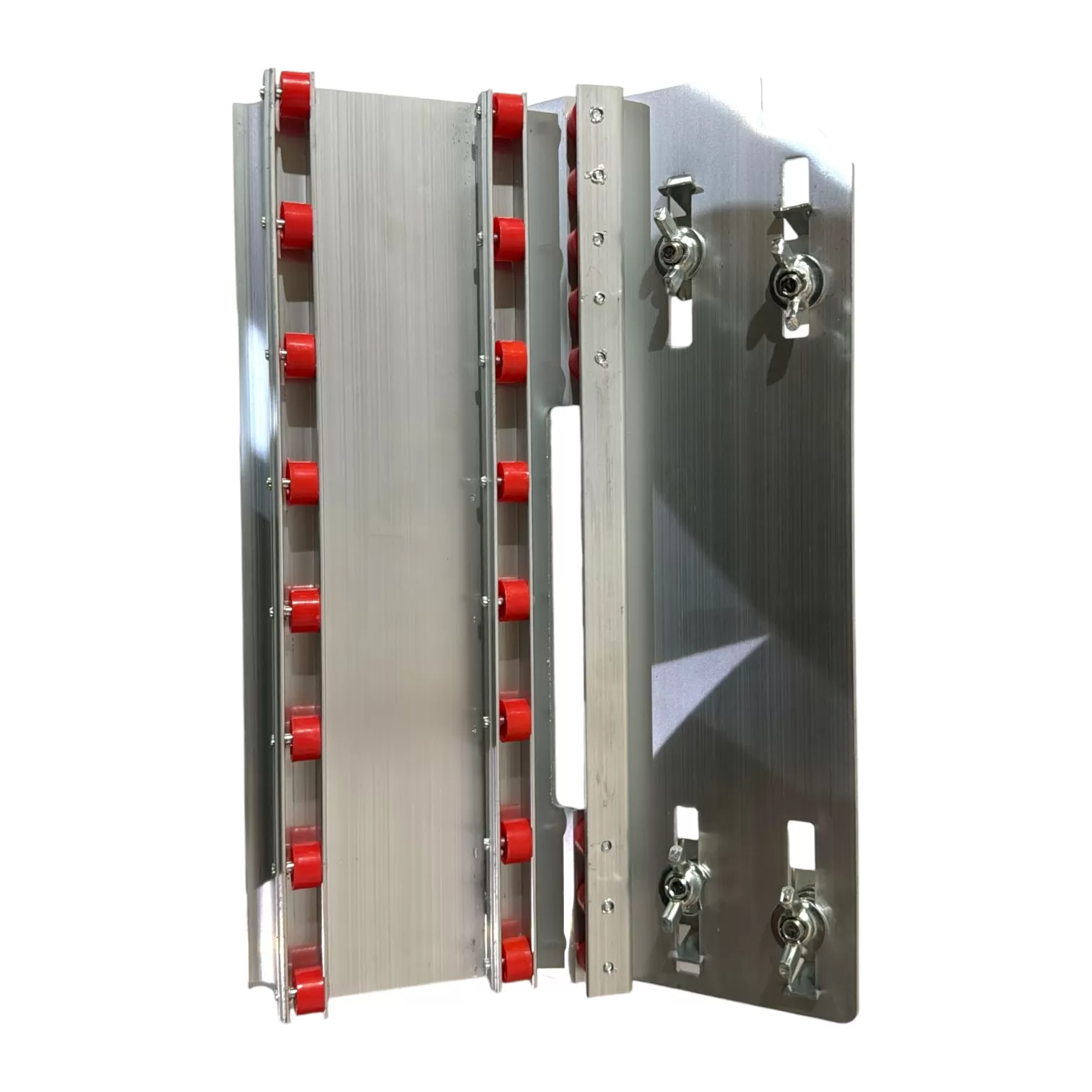 Рамка для резки фаски под углом 45 градусов выполнена из алюминиего сплава и используется для работы по камню, керамике, плитке, но только на ровной поверхности. Резиновые колеса позволяют двигать УШМ плавно и ровно, не ломая края. Общая длина инструмента 250 мм, отверстие для пильного диска 100 мм.