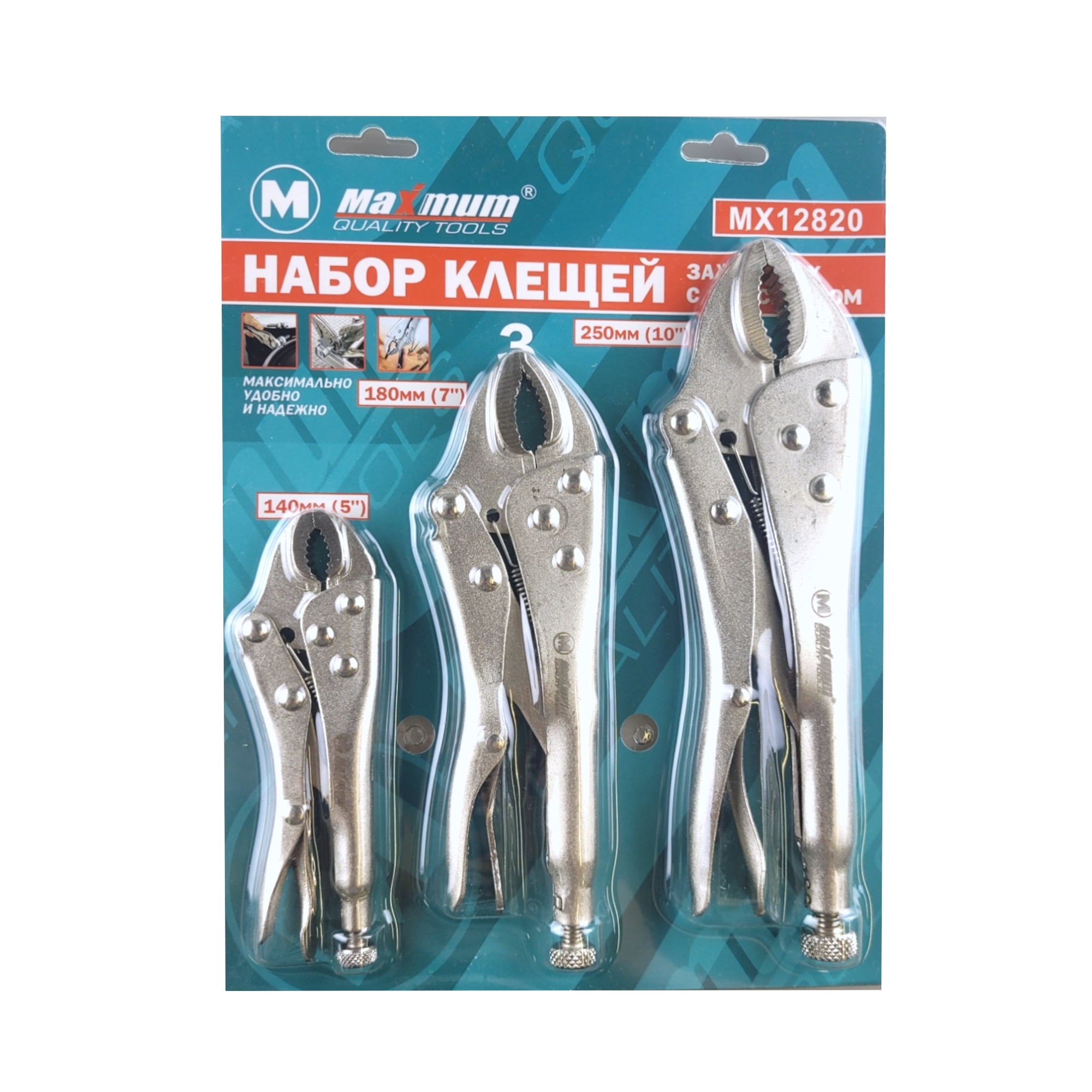 Набор клещей зажимных включает в себя три инструмента: