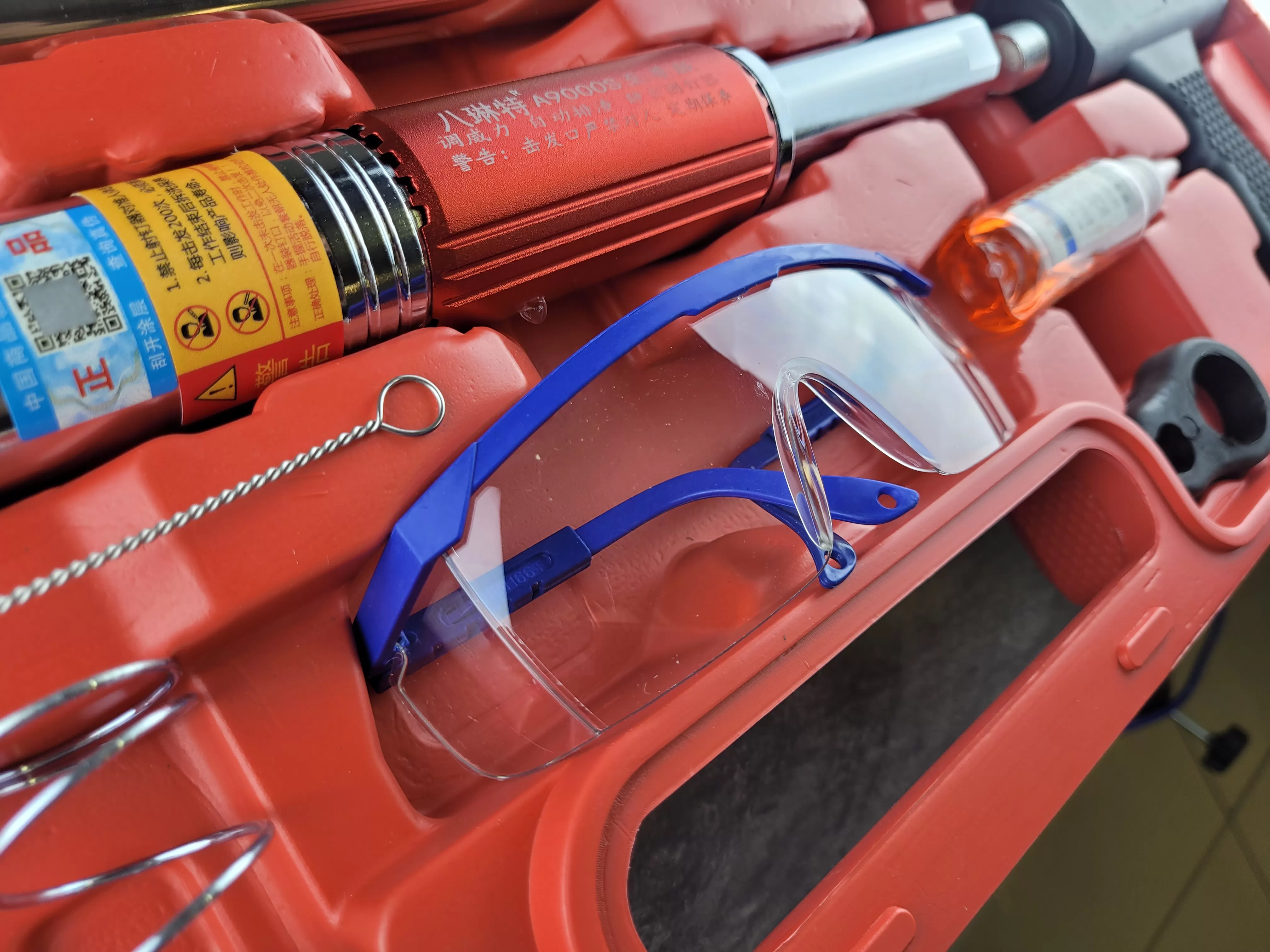 Пистолет использует пороховые заряды (патроны) разной мощности. Мощность обозначается цветом: