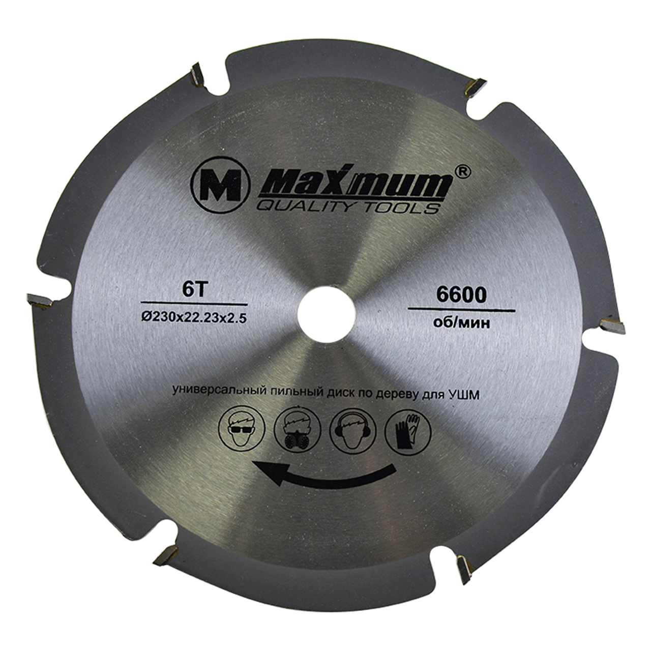 Универсальный пильный диск 230x22.23 мм от "Maximum" имеет 6 твердосплавных зубьев и предназначен для УШМ. Наличие векторной кромки и шести специальных зубов позволяет работать данным диском на высоких оборотах, без перегрева и с минимальной отдачей при резке.